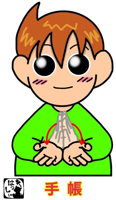 手話単語:1846 【手帳】 2024年01月14日 こんにちは(*・ω・)ノ【手帳】手のひらを合わせて小指側をつけたまま開きます。 それではまた((ヾ( ◍´꒳`◍ )いつも応援ありがとうございます!良ければ下↓のしゅうくんをポチっと押してね!てちょう 「手話単語」カテゴリの最新記事 タグ :#生活一般・家庭#ビジネス(仕事)関係#子ども・教育関係#医療・介護・福祉関係 < 前の記事次の記事 > コメント コメントフォーム 名前 コメント 記事の評価 リセット リセット 顔 星 情報を記憶 コメントを投稿する