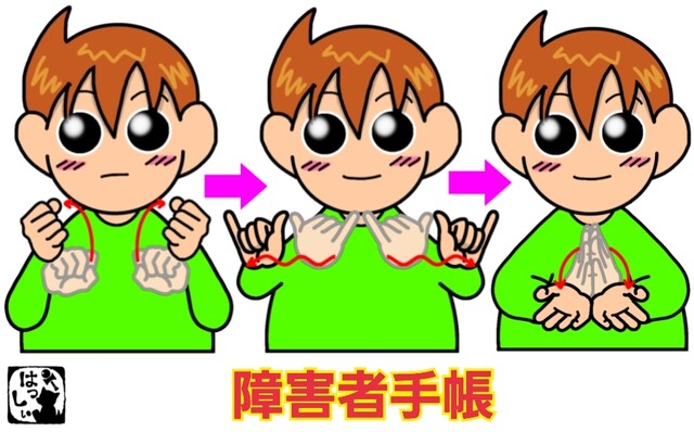 手話単語:1847 【障害者手帳】 2024年01月15日 こんにちは(*・ω・)ノ【障害者手帳】胸の前で両手をグーにして揃えたら、棒をポキンと折るように手を返しながら左右に離し【障害】親指と小指を立てた両手を左右に半回転させながら引き離し、【人々】手のひらを合わせて小指側をつけたまま開きます。【手帳】障害者手帳には3つの制度があります。・身体障害者手帳・精神障害者手帳・療育手帳病気や障害の種類によって該当する制度が異なります。 それではまた((ヾ( ◍´꒳`◍ )いつも応援ありがとうございます!良ければ下↓のしゅうくんをポチっと押してね!しょうがいしゃてちょう 「手話単語」カテゴリの最新記事 タグ :#医療・介護・福祉関係#生活一般・家庭 < 前の記事次の記事 > コメント コメント一覧 (2) 2. はっしぃ 2024年01月15日 10:06 はたぼーさん こんにちは! 少しでもみなさんが使いやすいようにと色々考えてるのですが、 まだまだ不便さがあるので色々ご不便をおかけするかもですが、 よろしくお願いいたします。 0 はっしぃ がしました 1. はたぼー 2024年01月15日 09:05 いつも、ありがとうございます😊 また、関連した手話も下に出てるので、有り難いです❤️ 0 はっしぃ がしました コメントフォーム 名前 コメント 記事の評価 リセット リセット 顔 星 情報を記憶 コメントを投稿する