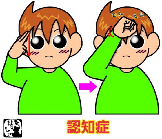 グーにした右手の親指側で、2回ほど額をトントンと叩きます。