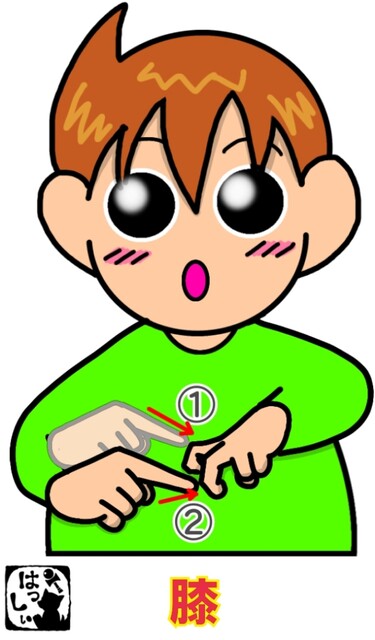手話単語1890 【膝】 2024年02月27日 こんにちは(*・ω・)ノ【膝】左手の人差し指と中指の2指を曲げた角を、右手の人差し指で指さします。それではまた((ヾ( ◍´꒳`◍ )いつも応援ありがとうございます!良ければ下↓のしゅうくんをポチっと押してね!ひざ 「手話単語」カテゴリの最新記事 タグ :#体#医療・介護・福祉関係 < 前の記事次の記事 > コメント コメントフォーム 名前 コメント 記事の評価 リセット リセット 顔 星 情報を記憶 コメントを投稿する