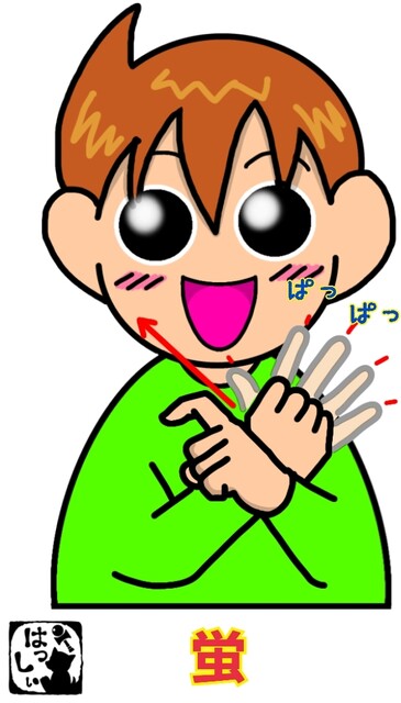 手話単語:1908 【蛍】 2024年03月16日 こんにちは(*・ω・)ノ【蛍】人差し指を曲げた左手首に右手をのせて、右手をパッパッと開閉させながら移動させます。おしりの光を点滅させて飛ぶ様子です。ル~ルルルルルルルっそれではまた((ヾ( ◍´꒳`◍ )いつも応援ありがとうございます!良ければ下↓のしゅうくんをポチっと押してね!ほたる 「手話単語」カテゴリの最新記事 タグ :#生き物(動物・鳥・虫・魚) < 前の記事次の記事 > コメント コメント一覧 (2) 2. はっしぃ 2024年03月25日 13:48 美里さま お疲れ様。 誰もつっこんでくれんけぇ寂しかったw ってか、そこまで詳しくセリフ言うって・・・。 うん、私もそれわかるよ?wwww 0 はっしぃ がしました 1. 美里 2024年03月25日 12:22 や、やめて。 久しぶりにみたら五郎さんでてきた。 「子どもがまだ食ってる途中でしょうが!!」と 「やるなら今しかねぇ♪やるなら今しかねぇ♪」 が頭から離れない… 0 はっしぃ がしました コメントフォーム 名前 コメント 記事の評価 リセット リセット 顔 星 情報を記憶 コメントを投稿する