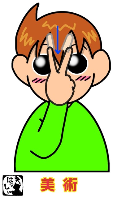 手話単語:1919 【美術】 2024年03月29日 こんにちは(*・ω・)ノ【美術】右手の人差し指と中指の2指を伸ばして広げ、指先をおでこの真ん中の上あたりにつけて下ろします。 それではまた((ヾ( ◍´꒳`◍ )いつも応援ありがとうございます!良ければ下↓のしゅうくんをポチっと押してね!びじゅつ 「手話単語」カテゴリの最新記事 タグ :#子ども・教育関係 < 前の記事次の記事 > コメント コメント一覧 (2) 2. はっしぃ 2024年03月29日 13:38 ウルトラマンさん こんにちは! ウルトラマンさんもお元気ですか? 芸術と美術似ていますね! 芸術は下に下ろすのが2回、 美術は下に下ろすのが1回…だそうです。 とりあえず文で書いてはいますが、 実際観ると間違えちゃいそうですけど、 もう、読み取る時は動きと口の動きがあればその動きに気をつけるしかないでしょうねぇ(笑) そんな感じです(笑) 0 はっしぃ がしました 1. ウルトラマン 2024年03月29日 13:34 お久しぶりです。お元気で居てましたか? 「芸術」と「美術」手話似てますね。 その違いは、どうやって覚えたらよろしいですか? 何か覚えるヒントはありますか? 0 はっしぃ がしました コメントフォーム 名前 コメント 記事の評価 リセット リセット 顔 星 情報を記憶 コメントを投稿する