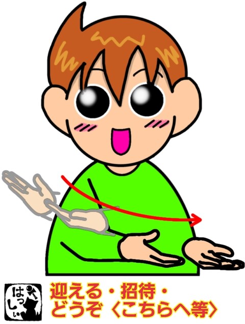手話単語:1922 【迎える】【招待】【招待する】【どうぞ〈こちらへ等〉】 2024年04月01日 こんにちは(*・ω・)ノ【迎える・招待・招待する・どうぞ〈こちらへ等〉】両手の手のひらを上に向けて、右から左へ動かして相手を迎える動作をします。 それではまた((ヾ( ◍´꒳`◍ )いつも応援ありがとうございます!良ければ下↓のしゅうくんをポチっと押してね!むかえる・しょうたい 「手話単語」カテゴリの最新記事 タグ :#生活一般・家庭 < 前の記事次の記事 > コメント コメントフォーム 名前 コメント 記事の評価 リセット リセット 顔 星 情報を記憶 コメントを投稿する