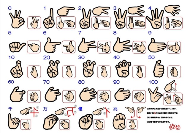 相手側からみた手・赤枠の中には自分側からの手を描きました。