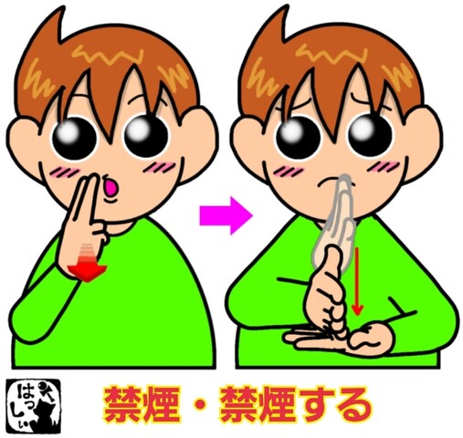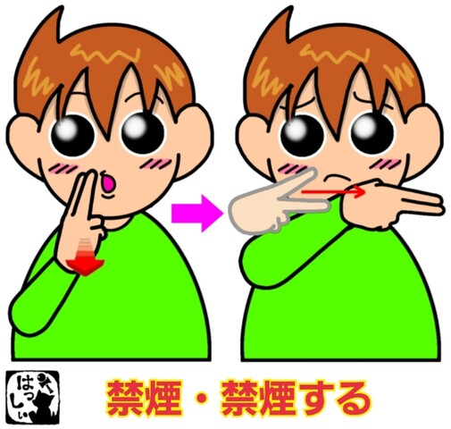 口の前で人差し指と中指をでパチンと煙草を切る仕草をします。