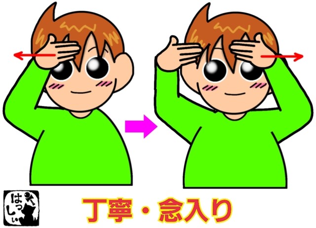 手話単語:2078 【丁寧】【念入り】 2024年09月13日 こんにちは(*・ω・)ノ【丁寧・念入り】右手で左をぬぐった後に、左手で額をぬぐいます。それではまた((ヾ( ◍´꒳`◍ )いつも応援ありがとうございます!良ければ下↓のしゅうくんをポチっと押してね!ていねい・ねんいり 「手話単語」カテゴリの最新記事 タグ :#生活一般・家庭 < 前の記事次の記事 > コメント コメントフォーム 名前 コメント 記事の評価 リセット リセット 顔 星 情報を記憶 コメントを投稿する