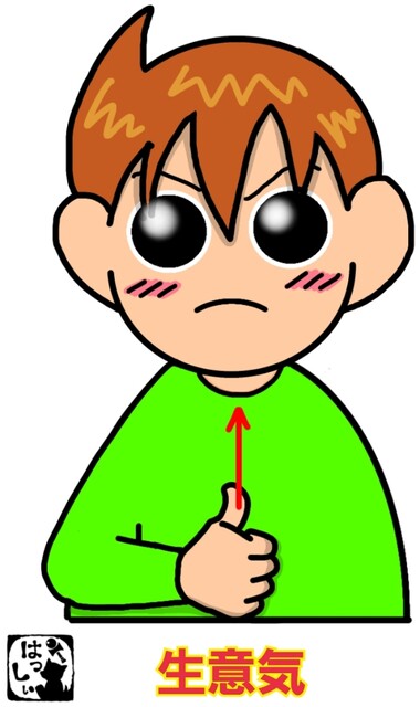 手話単語:2136 【生意気】 2024年11月09日 こんにちは(*・ω・)ノ【生意気】立てた右手の親指をお腹に沿ってゆっくり上に上げます。 それではまた((ヾ( ◍´꒳`◍ )いつも応援ありがとうございます!良ければ下↓のしゅうくんをポチっと押してね!なまいき 「手話単語」カテゴリの最新記事 タグ :#挨拶・感情・動き < 前の記事次の記事 > コメント コメントフォーム 名前 コメント 記事の評価 リセット リセット 顔 星 情報を記憶 コメントを投稿する