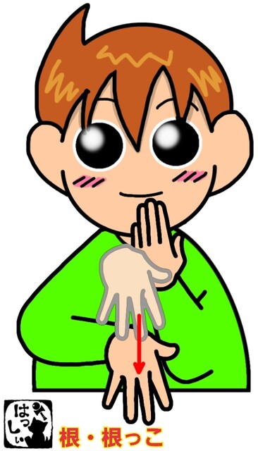 手話単語:2219 【根】【根っこ】 2025年02月02日 はじめましての方はこちらへどうぞ👇こんにちは(*・ω・)ノ【根・根っこ】パーにして立てた左手の手首から、パーにして指先を下に向けた右手を下に向けて下ろします。それではまた((ヾ( ◍´꒳`◍ )いつも応援ありがとうございます!良ければ下↓のしゅうくんをポチっと押してね!ね・ねっこ 「手話単語」カテゴリの最新記事 タグ :#植物(木・花・草など) < 前の記事次の記事 > コメント コメントフォーム 名前 コメント 記事の評価 リセット リセット 顔 星 情報を記憶 コメントを投稿する