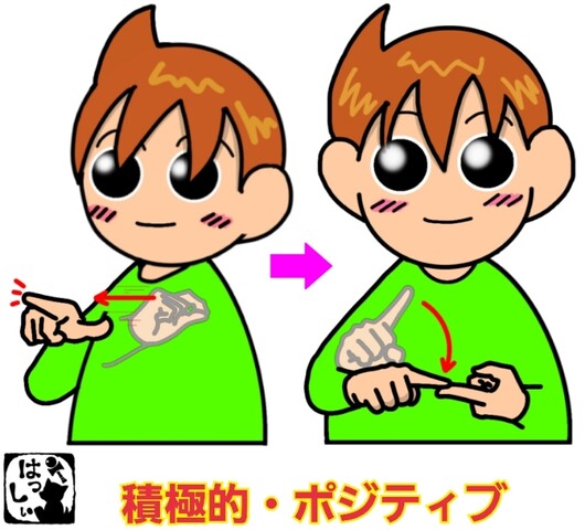 手話単語:2252 【積極的】【ポジティブ】 2025年03月16日 はじめましての方はこちらへどうぞ👇こんにちは(*・ω・)ノ【積極的】つまんだ右手2指を左の脇につけて、勢いよくピッと前に出して2指を伸ばして、【積極】伸ばした左手の人差し指の指先に伸ばした右手の人差し指の指先を上から付け合せます。【的】 それではまた((ヾ( ◍´꒳`◍ )いつも応援ありがとうございます!良ければ下↓のしゅうくんをポチっと押してね!せっきょくてき・ぽじてぃぶ 「手話単語」カテゴリの最新記事 タグ :#挨拶・感情・動き < 前の記事次の記事 > コメント コメントフォーム 名前 コメント 記事の評価 リセット リセット 顔 星 情報を記憶 コメントを投稿する