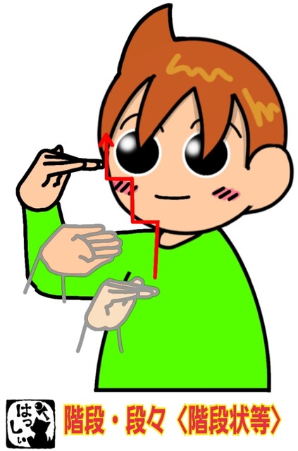 右手を指文字の【コ】の形にして、階段の形を描いてあげていきます。