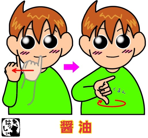 手話単語:2295 【醤油】 2025年05月06日 はじめましての方はこちらへ👇こんにちは(*・ω・)ノ【醤油】立てた右手の小指の先を唇に当てて右へ少し動かし、伸ばした右手の親指と小指の2指の親指側を下に向けてクルンと水平に回します。 それではまた((ヾ( ◍´꒳`◍ )いつも応援ありがとうございます!良ければ下↓のしゅうくんをポチっと押してね!しょうゆ 「手話単語」カテゴリの最新記事 タグ :#食べ物・飲み物・料理関係 < 前の記事次の記事 > コメント コメントフォーム 名前 コメント 記事の評価 リセット リセット 顔 星 情報を記憶 コメントを投稿する
