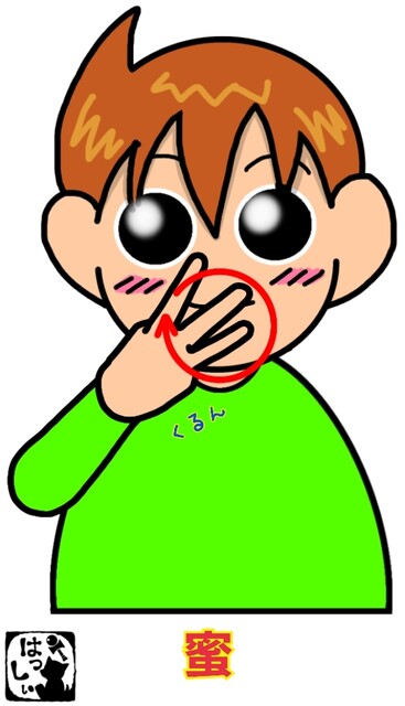 手話単語:2316 【蜜】 2025年05月27日 はじめましての方はこちらへ👇こんにちは(*・ω・)ノ【蜜】右手の人差し指・中指・薬指の3指を伸ばして、手の甲は相手側に向けて口元で円を描くように1、2回まわします。 それではまた((ヾ( ◍´꒳`◍ )いつも応援ありがとうございます!良ければ下↓のしゅうくんをポチっと押してね!みつ 「手話単語」カテゴリの最新記事 タグ :#食べ物・飲み物・料理関係 < 前の記事次の記事 > コメント コメントフォーム 名前 コメント 記事の評価 リセット リセット 顔 星 情報を記憶 コメントを投稿する