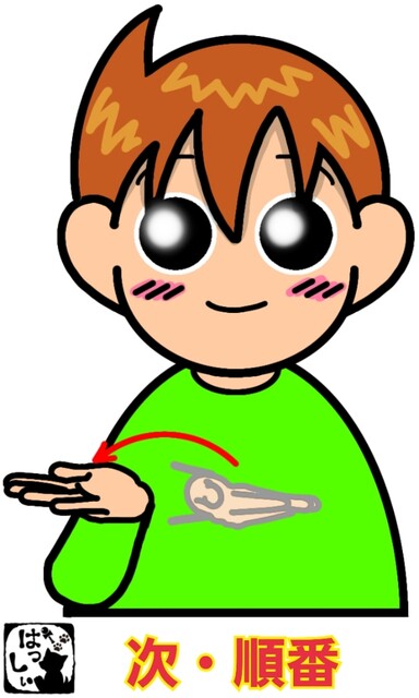 手話単語:2394 【次】【順番】 2025年09月19日 はじめましての方はこちらへ👇こんにちは(*・ω・)ノ【次・順番】右の手のひらを上に向けて、小さく弧を描いて左に動かします。👇反対の動きで表す方もいらっしゃいます。【次・順番】右の手のひらを上に向けて、体の前に置いたら小さく弧を描いて右に動かします。それではまた((ヾ( ◍´꒳`◍ )いつも応援ありがとうございます!気が向いたら下↓のしゅうくんをポチっと押してね!つぎ・じゅんばん 「手話単語」カテゴリの最新記事 タグ :#挨拶・感情・動き < 前の記事次の記事 > コメント コメントフォーム 名前 コメント 記事の評価 リセット リセット 顔 星 情報を記憶 コメントを投稿する