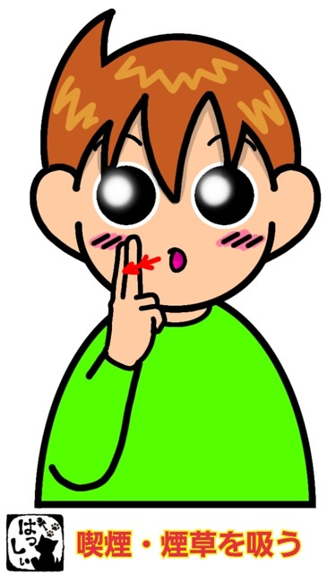 手話単語:2409 【喫煙】【タバコ】【タバコを吸う】 2025年10月04日 はじめましての方はこちらへ👇こんにちは(*・ω・)ノ【喫煙・煙草・煙草を吸う】右手の人差し指と中指の2指を伸ばして口元に持っていき、煙草を吸う仕草をします。 それではまた((ヾ( ◍´꒳`◍ )いつも応援ありがとうございます!気が向いたら下↓のしゅうくんをポチっと押してね!きつえん・たばこ・たばこをすう 「手話単語」カテゴリの最新記事 タグ :#生活一般・家庭 < 前の記事次の記事 > コメント コメントフォーム 名前 コメント 記事の評価 リセット リセット 顔 星 情報を記憶 コメントを投稿する