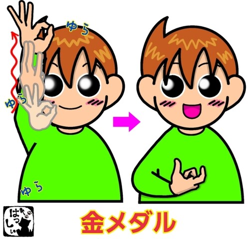 手話単語:2415 【金メダル】 2025年10月11日 はじめましての方はこちらへ👇こんにちは(^▽^)/【金メダル】右手の人差し指と親指の2指で作った輪をユラユラ揺らしながら上にあげ、【金】指先を上にした人差し指と親指で丸い形を作り、胸の前に置きます。【メダル】 それではまた((ヾ( ◍´꒳`◍ )いつも応援ありがとうございます!気が向いたら下↓のしゅうくんをポチっと押してね!きんめだる 「手話単語」カテゴリの最新記事 タグ :#デフリンピック・オリンピック・パラリンピック関係#スポーツ < 前の記事次の記事 > コメント コメントフォーム 名前 コメント 記事の評価 リセット リセット 顔 星 情報を記憶 コメントを投稿する