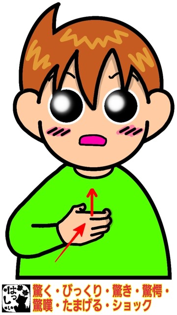 手話単語:2476 【驚く】【びっくり】【びっくりする】【驚き】【驚愕】【驚愕する】【驚嘆】【驚嘆する】【たまげる】【ショック】【ショックを受ける】 2025年12月11日 はじめましての方はこちらへ👇こんにちは(^▽^)/【驚く・びっくり・びっくりする・驚き・驚愕・驚愕する驚嘆・驚嘆する・たまげる・ショック・ショックを受ける】右手の5指を丸めて、指先を胸に強く当てると同時に素早く上にあげます。 それではまた((ヾ( ◍´꒳`◍ )いつも応援ありがとうございます!気が向いたら下↓のしゅうくんをポチっと押してね!おどろく・おどろき・きょうがく・きょうがくする・きょうたん・きょうたんする・しょっく・しょっくをうける 「手話単語」カテゴリの最新記事 タグ :#挨拶・感情・動き < 前の記事次の記事 > コメント コメントフォーム 名前 コメント 記事の評価 リセット リセット 顔 星 情報を記憶 コメントを投稿する