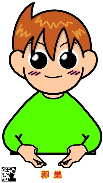 両手を指文字の【ラ】の形にして、両下腹部にあてます。