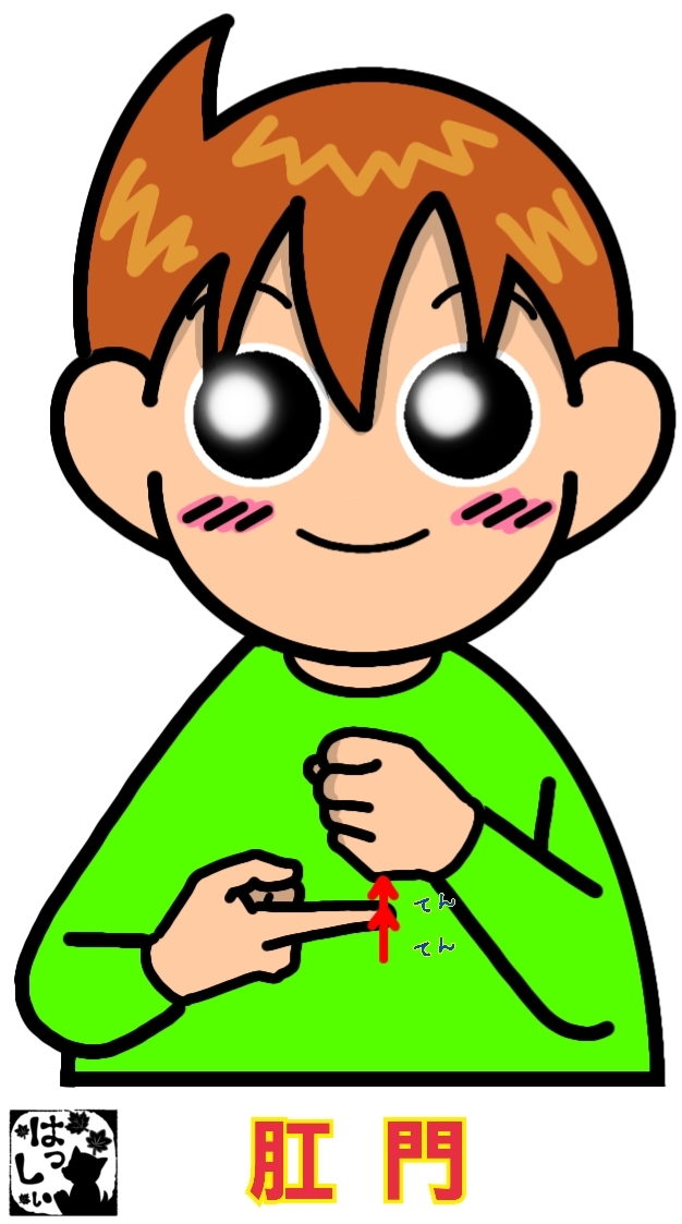 手話単語:2509 【肛門】 2026年01月17日 はじめましての方はこちらへ👇こんにちは(^▽^)/【肛門】左手をグーにして立て、小指側を右の人差し指でテンテンと指します。 それではまた((ヾ( ◍´꒳`◍ )いつも応援ありがとうございます!気が向いたら下↓のしゅうくんをポチっと押してね!こうもん 「手話単語」カテゴリの最新記事 タグ :#体#医療・介護・福祉関係 < 前の記事次の記事 > コメント コメントフォーム 名前 コメント 記事の評価 リセット リセット 顔 星 情報を記憶 コメントを投稿する