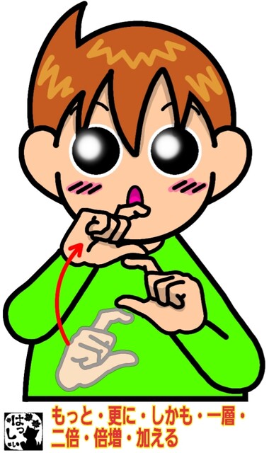 手話単語:402 【もっと】【更に】【しかも】【一層】【二倍】【倍増】【加える】