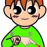 右手を上にあげて、親指を左手の人差し指の上に置きます。