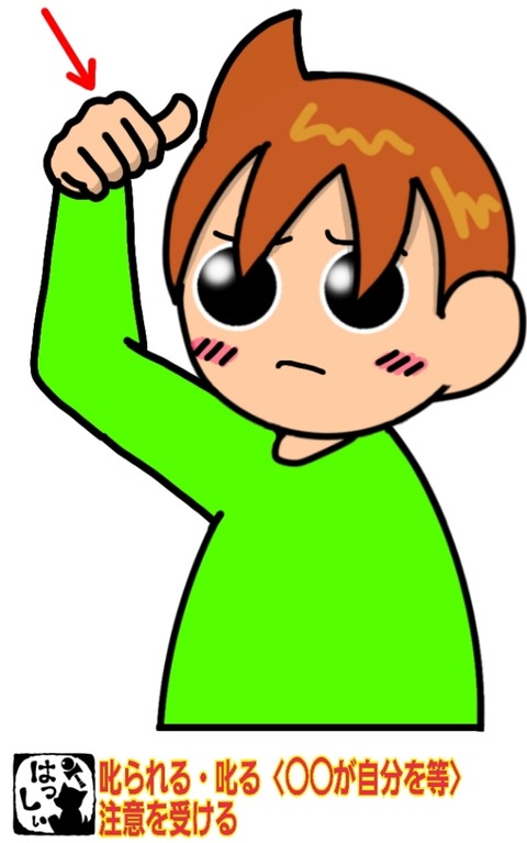 手話単語:2268 【叱られる】【叱る〈〇〇が自分を等〉】【注意を受ける】 2025年04月05日 はじめましての方はこちらへ👇こんにちは(*・ω・)ノ【叱られる・叱る〈〇〇が自分を等〉・注意を受ける】親指を立てた右手を額に向けて打ち下ろします。それではまた((ヾ( ◍´꒳`◍ )いつも応援ありがとうございます!良ければ下↓のしゅうくんをポチっと押してね!しかられ ... 続きを読む
