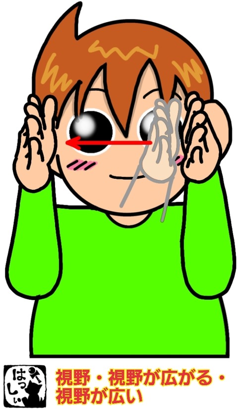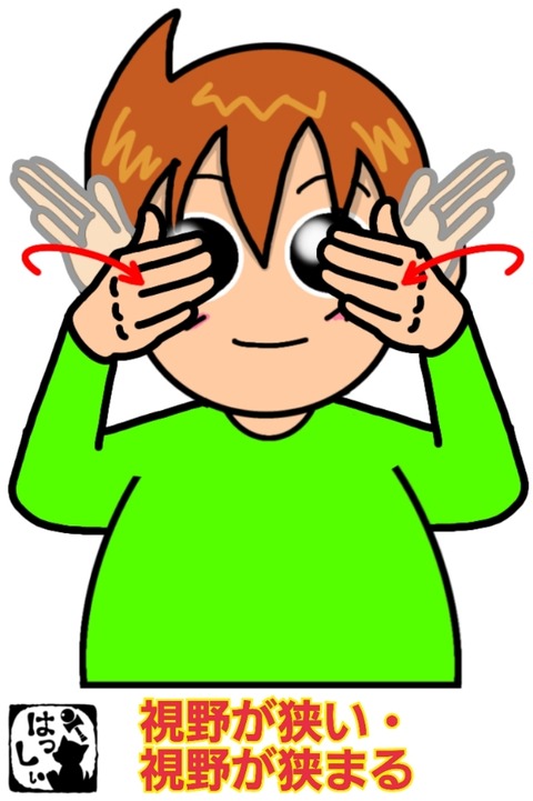 手話単語:2177 【視野】【視野が広い】【視野が広がる】 2024年12月19日 こんにちは(*・ω・)ノ【視野・視野が広い・視野が広がる】両手の指先を前に向けて左目側に置いて、ス~ッと右手だけを右に移動させます。それではまた((ヾ( ◍´꒳`◍ )いつも応援ありがとうございます!良ければ下↓のしゅうくんをポチっと押してね!しや・しやがひろい・し ... 続きを読む