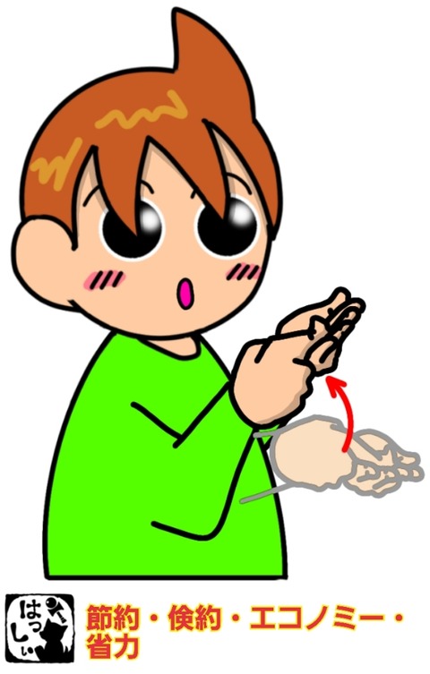 手話単語:2208 【節約】【節約する】【倹約】【倹約する】【エコノミー】【省力】 2025年01月22日 はじめましての方はこちらへどうぞ👇こんにちは(*・ω・)ノ【節約・節約する。倹約・倹約する・エコノミー・省力】左の手のひらに右手の曲げた人差し指をのせて、自分側に引き寄せます。人差し指の曲げた部分だけを手のひらにのせます。 それではまた((ヾ( ◍´꒳`◍ )いつも応 ... 続きを読む