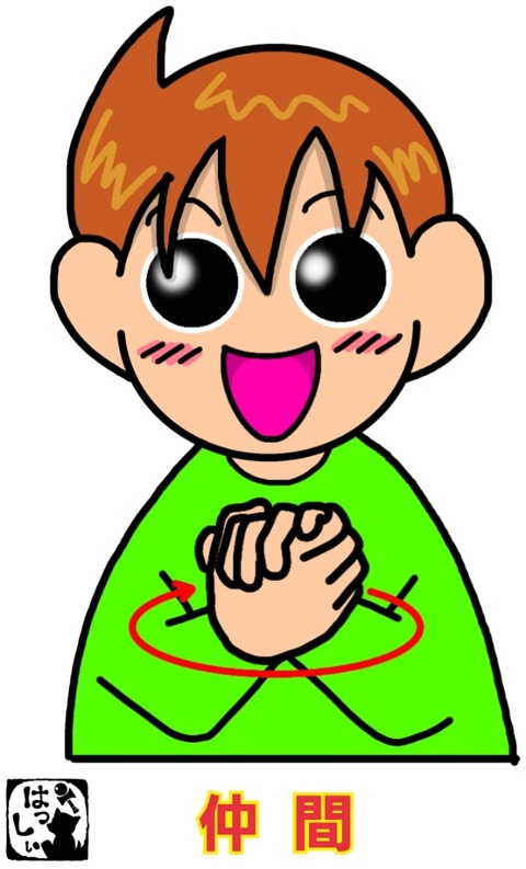 手話単語:1527 【仲間】 2023年01月21日 こんにちは(*´ω`*)ノ))【仲間】両手を合わせて握ったら、水平に円を描きます。 それではまた(。・ω・)ノ゙いつも応援ありがとうございます!良ければ下↓のしゅうくんをポチっと押してね!なかま ... 続きを読む