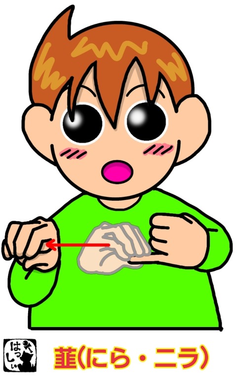 手話単語:1385 【韮(にら・ニラ)】 2022年10月06日 こんにちは(*・ω・)ノ【韮・ニラ・にら】左手の小指を伸ばして横にしたら、右手の親指と他の4指ではさみ、右手を右方向へ移動させます。薄く長いニラの葉のイメージで!ってか、先日スーパーに行ったら・・・ニラが恐ろしく高くなっていた・・・。これから鍋のシーズンなのに ... 続きを読む