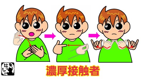 手話単語:1146 【濃厚接触者】 2020年11月19日 こんにちは(*・ω・)ノ【濃厚接触者】左の手のひらで右の手のひらをタッチして、【接触】右手を右方へ動かしながら親指を人差し指の先からつけ引いて立て、【濃い】親指と小指2指を立てた両手を左右に半回転しながら引き離します。【人々】上記がコロナ関連用語の決定表現です ... 続きを読む