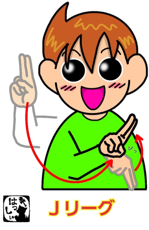手話単語:1745 【Jリーグ】 2023年08月24日 こんにちは(*・ω・)ノ【Jリーグ】右手の人差し指と中指の2指で【J】を描いた後、ピッと2指を跳ね上げて指先を上に向けます。右手2指で【J】を描いて、2指でボールを蹴る仕草の表現です。 それではまた((ヾ( ◍´꒳`◍ )いつも応援ありがとうございます!良ければ下↓の ... 続きを読む