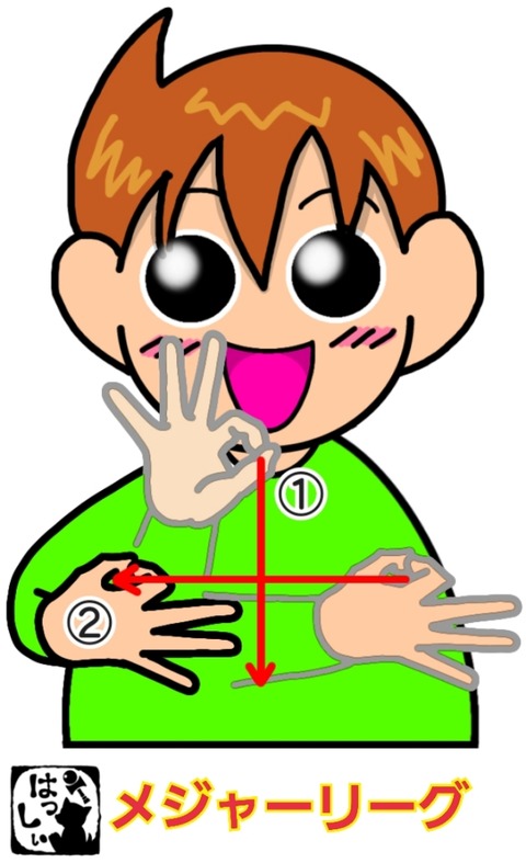 手話単語:1800 【メジャーリーグ】 2023年11月18日 こんにちは(*・ω・)ノ【メジャーリーグ】指文字の【メ】にした右手の3指を下にしておろし、右に引いて十字形を描きます。指文字の【メ】と【リーグ戦】を合わせた表現です。それではまた((ヾ( ◍´꒳`◍ )いつも応援ありがとうございます!良ければ下↓のしゅうくんをポチっ ... 続きを読む
