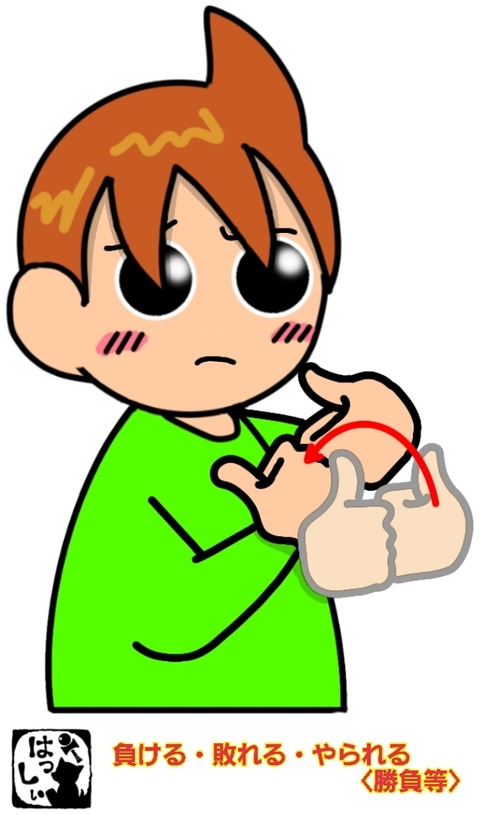 手話単語:1774 【負ける】【敗れる】【やられる〈勝負等〉】 2023年10月23日 こんにちは(*・ω・)ノ【負ける・敗れる・やられる〈勝負等〉】両手の親指を立てて前後にくっつけて置いたら、同時に自分側に倒します。 それではまた((ヾ( ◍´꒳`◍ )いつも応援ありがとうございます!良ければ下↓のしゅうくんをポチっと押してね!まける・やぶれる ... 続きを読む