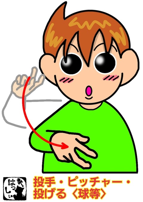 手話単語:1595 【投手】【ピッチャー】【投げる〈球等〉】 2023年03月04日 こんにちは(*・ω・)ノ【投手・ピッチャー・投げる〈球等〉】右手の3指でボールをつかんで投げる仕草をします。あなたの好きなピッチャーは誰ですかぁ? それではまた((ヾ( ◍´꒳`◍ )いつも応援ありがとうございます!良ければ下↓のしゅうくんをポチっと押してね!とうしゅ ... 続きを読む