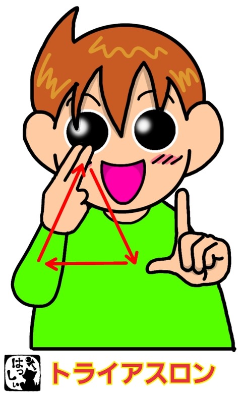 手話単語:1211 【トライアスロン】 2021年07月27日 こんにちは(*・ω・)ノ【トライアスロン】左手は指文字の【レ】の形にして置き、右手は指文字の【ト】の形にして三角を描きます。それではまた(。・ω・)ノ゙いつも応援ポチありがとうございます!励みになりますのでこれからもよろしくおねがいします。ε=ε=ε=(●・д・ノ)ノ【。+゚: ... 続きを読む