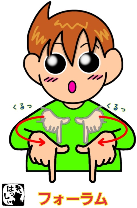 手話単語:2352 【フォーラム】 2025年07月27日 はじめましての方はこちらへ👇こんにちは(*・ω・)ノ【フォーラム】両手は指文字の【フ】の形にして指先を向かい合わせ、手前から弧を描いて前に出します。 それではまた((ヾ( ◍´꒳`◍ )いつも応援ありがとうございます!気が向いたら下↓のしゅうくんをポチっと押してね!ふ ... 続きを読む