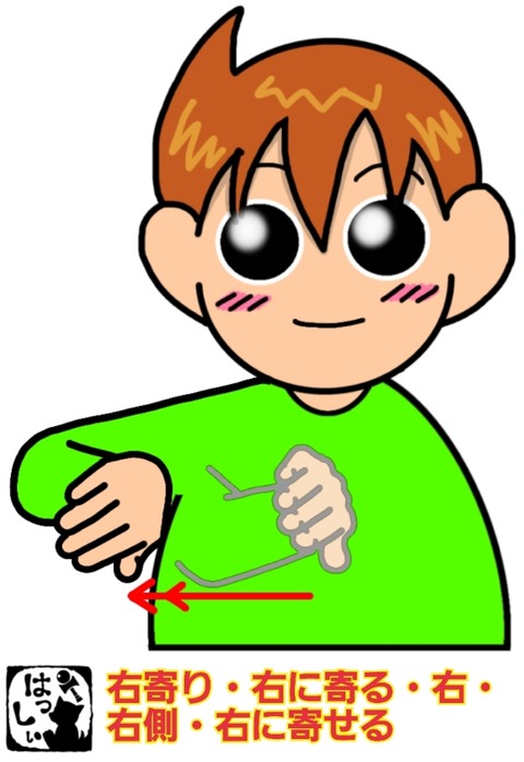 手話単語:2120 【右寄り】【右に寄せる】【右に寄る】【右】【右側】 2024年10月27日 こんにちは(*・ω・)ノ【右寄り・右に寄せる・右に寄る・右・右側】右方に向けた右の手のひらを右へ2回動かします。 それではまた((ヾ( ◍´꒳`◍ )いつも応援ありがとうございます!良ければ下↓のしゅうくんをポチっと押してね!みぎより・みぎによる・みぎによせる・みぎ・ ... 続きを読む