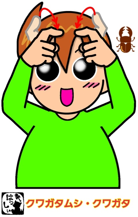 手話単語:2040 【クワガタムシ】【クワガタ】 2024年07月28日 こんにちは(*・ω・)ノ【クワガタムシ・クワガタ】両手の人差し指を曲げておでこの両脇に置いたら、チョキチョキと指先を外側から内側に2回動かします。 それではまた((ヾ( ◍´꒳`◍ )いつも応援ありがとうございます!良ければ下↓のしゅうくんをポチっと押してね!くわがた ... 続きを読む