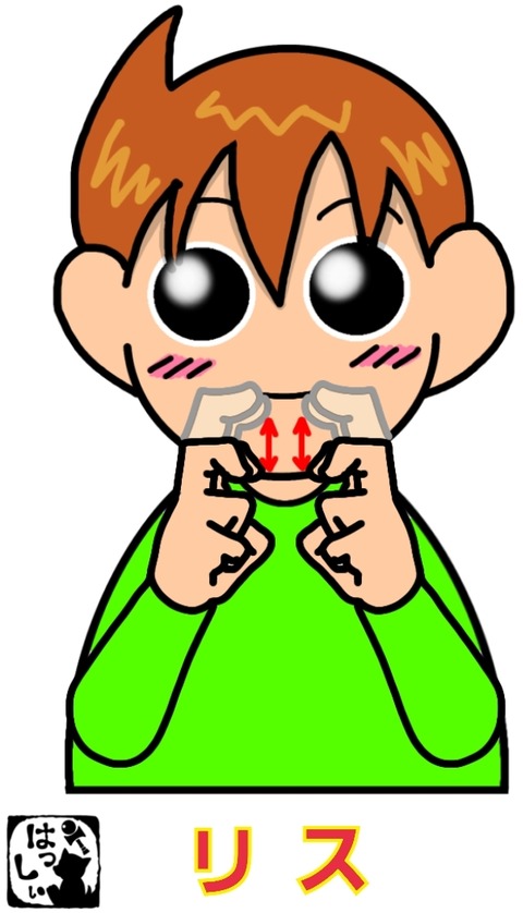 手話単語:2202 【リス】 2025年01月16日 はじめましての方はこちらへ👇こんにちは(*・ω・)ノ2パターンご紹介します。【リス】口の前で折り曲げた両手の人差し指と中指の2指を向き合わせて、2指を同時に屈伸させます。もういっちょ!【リス】折り曲げた両手の人差し指と中指の2指を、口の前で向い合せて外→中と同 ... 続きを読む