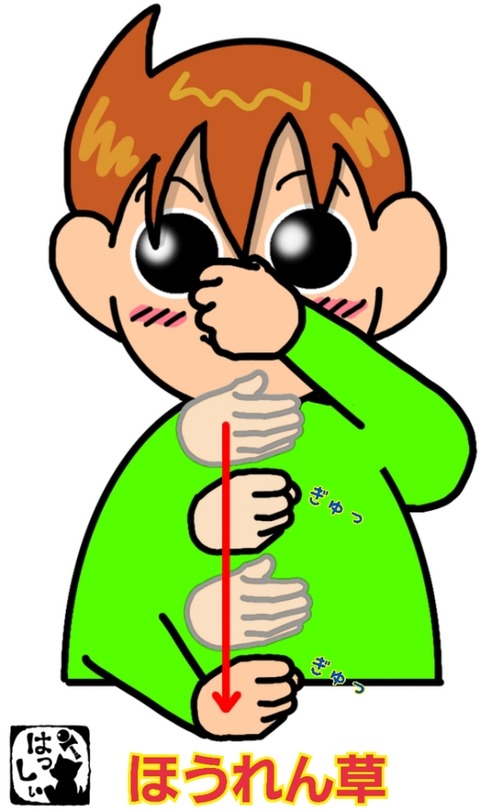手話単語:1557 【ほうれん草】 2023年02月09日 こんにちは(*・ω・)ノ【ほうれん草】左手はグーにして小指側を下にして顔の前に置いたら、少し丸めた右手は左手の下に置く→ギュッと握るを繰り返して下ろします。それではまた((ヾ( ◍´꒳`◍ )いつも応援ありがとうございます!良ければ下↓のしゅうくんをポチっと押してね ... 続きを読む