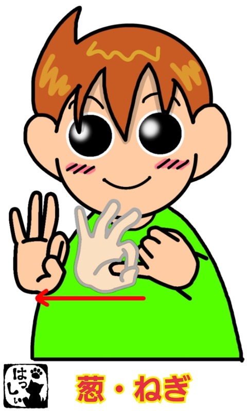 手話単語:946 【葱】【ねぎ】 2018年10月31日 こんにちは(*・ω・)ノ【葱・ねぎ】右手の親指と人差し指で作った輪に左手の小指を通して、右手の輪をスッと右へ動かします。 それではまた((ヾ( ◍´꒳`◍ )いつも応援ありがとうございます!良ければ下↓のしゅうくんをポチっと押してね! ... 続きを読む